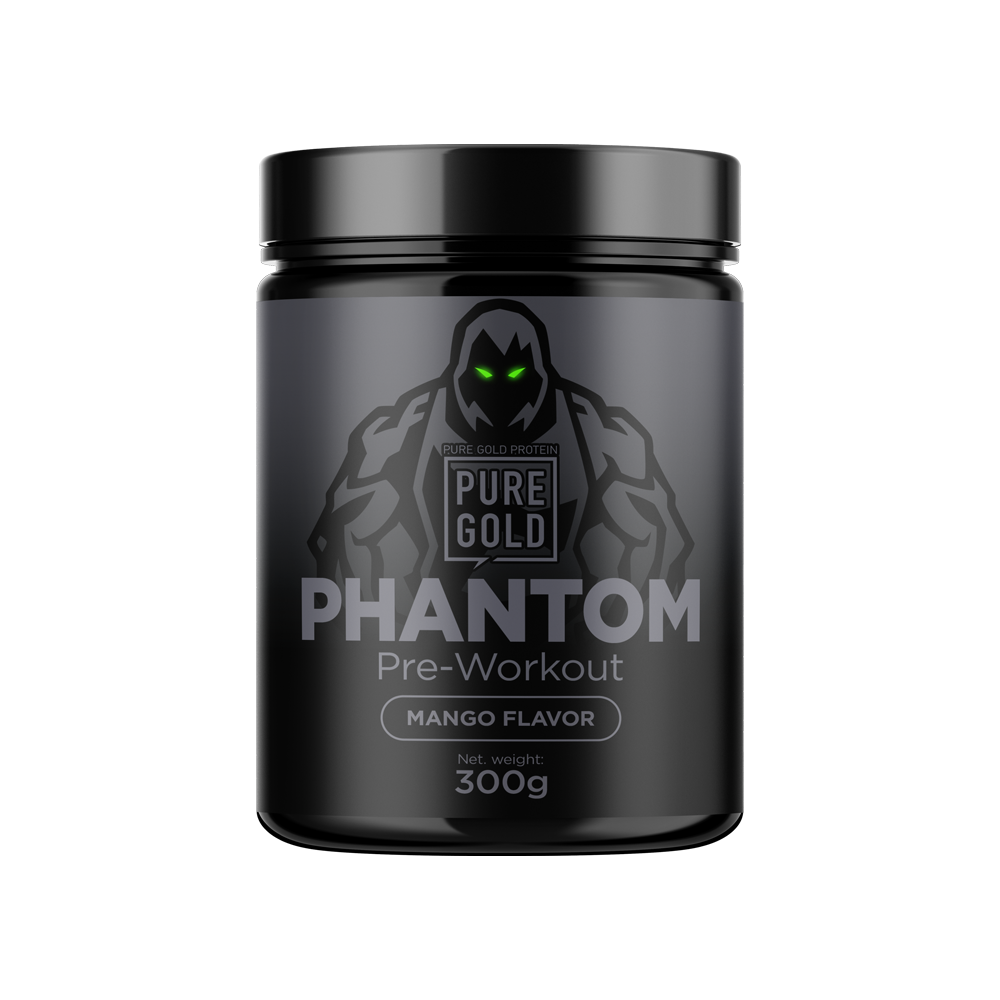 Phantom egy edzés előtti étrend-kiegészítő italpor kreatinnal, aminosavakkal, gyógynövény kivonatokkal és adagonként 200mg koffeinnel.